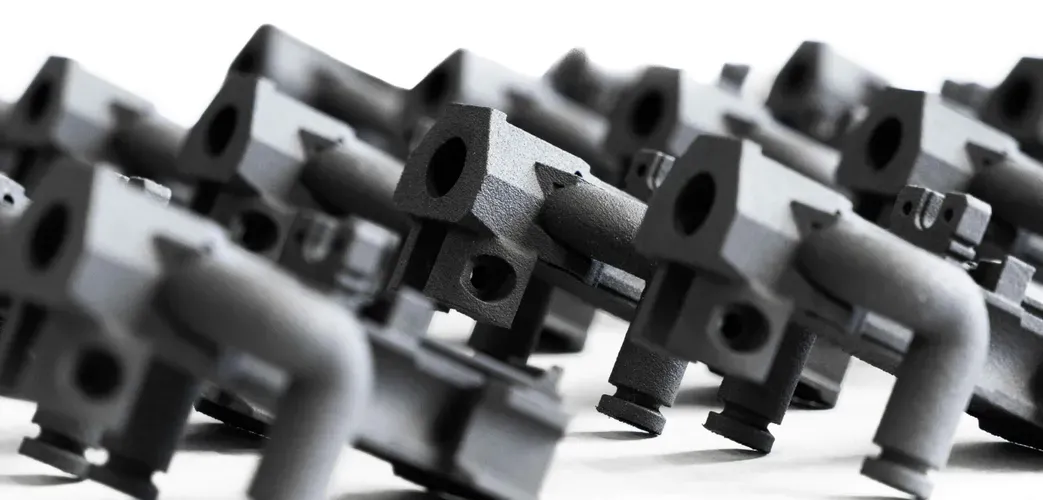 MJF 3D printing is a Powder Bed Fusion (PBF) technology that uses a heat source to fuse thermoplastic powder particles—typically nylon or TPU—within a build chamber. This process combines infrared energy with a fusing agent to create each layer of the part. MJF is renowned for producing robust components with moderate temperature resistance, making it ideal for applications such as engine housings, bellows, baffles, and jigs and fixtures.